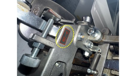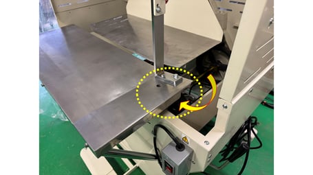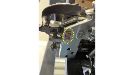 足踏み機、タンデム機とも紐をセットする部分のナイフ台ベースに貼られているシールを確認して下さい。